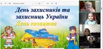 14 жовтня ми відзначаємо одразу кілька важливих свят: День захисників і захисниць України та День Українського козацтва. Цей день є символом мужності, сили духу, любові до Батьківщини та готовності її боронити.